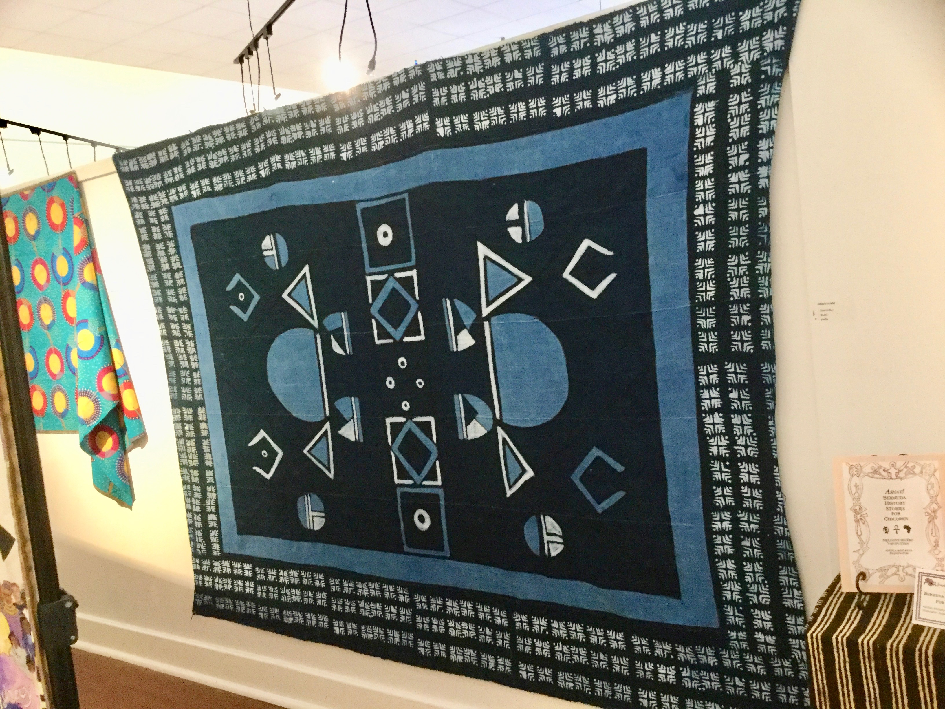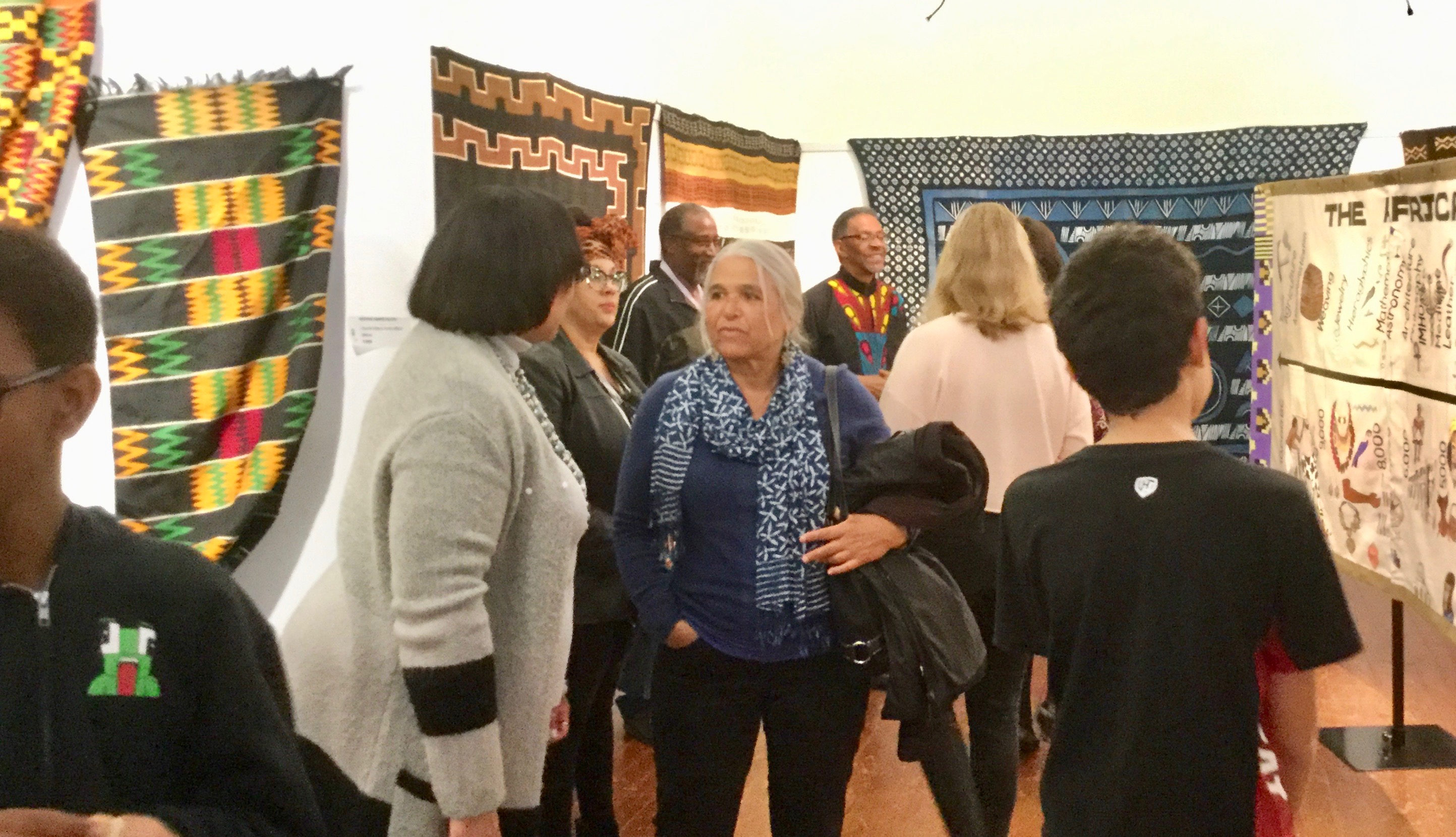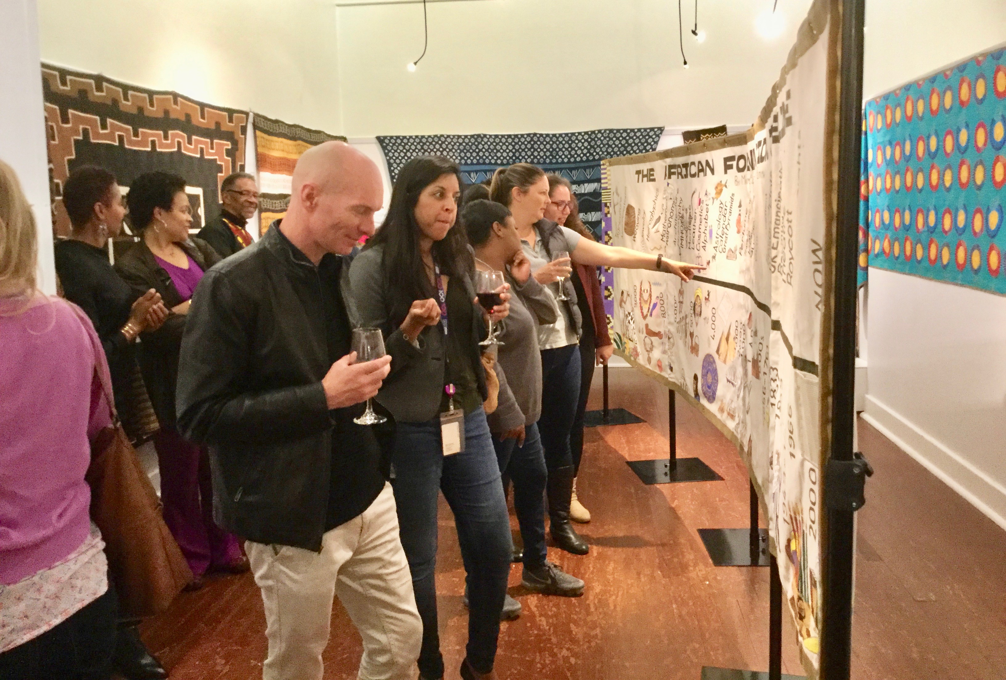 The walls surrounding MAFT at the ten-day exhibit were adorned with various African fabrics including mud cloth, kente, indigo cloth, and wood scupltures. Periodic talks about the timeline were also part of the exhibit programme.