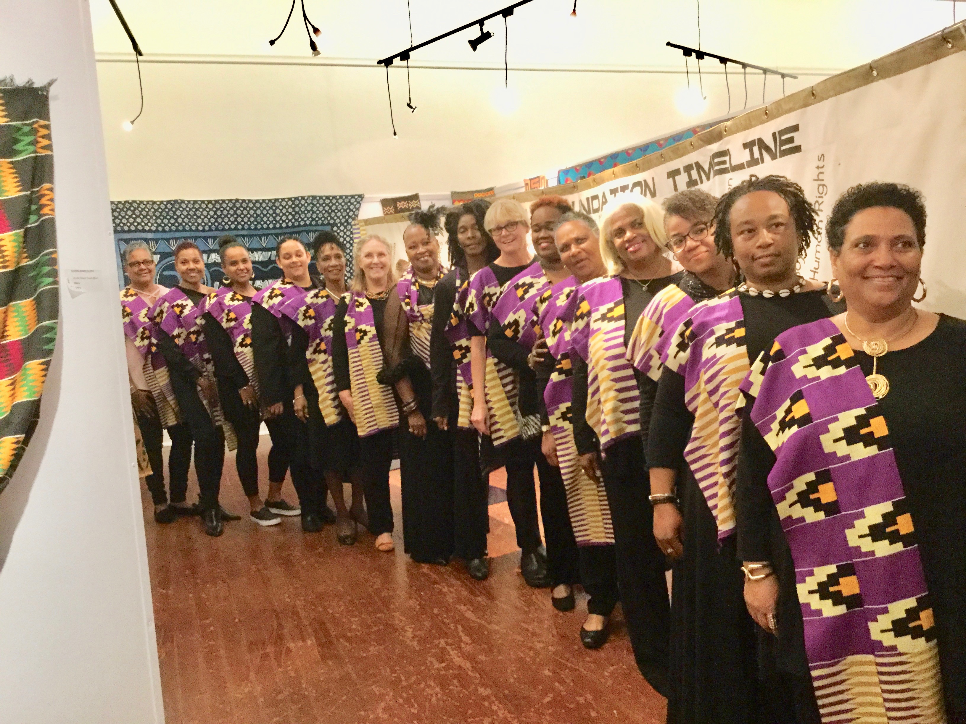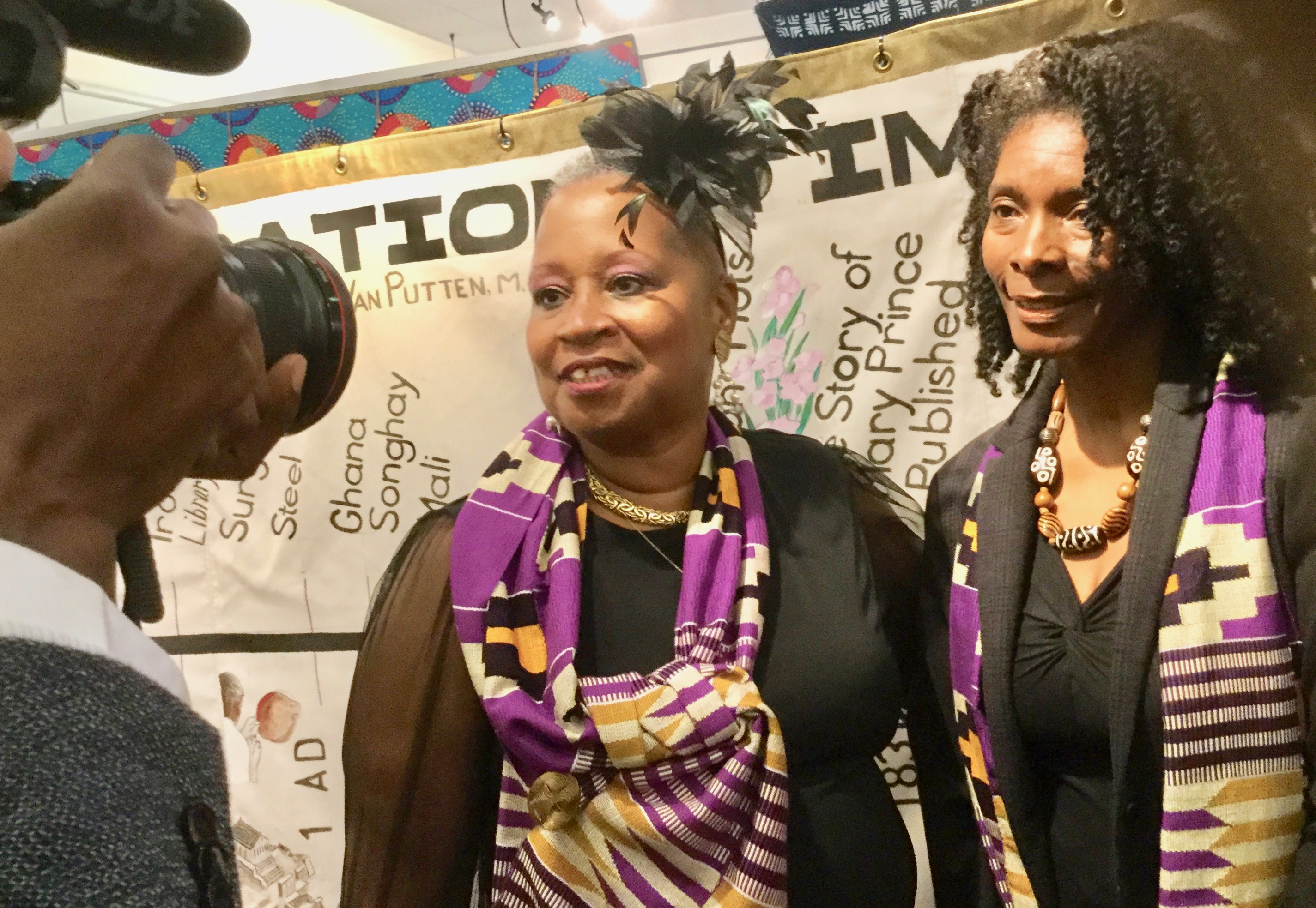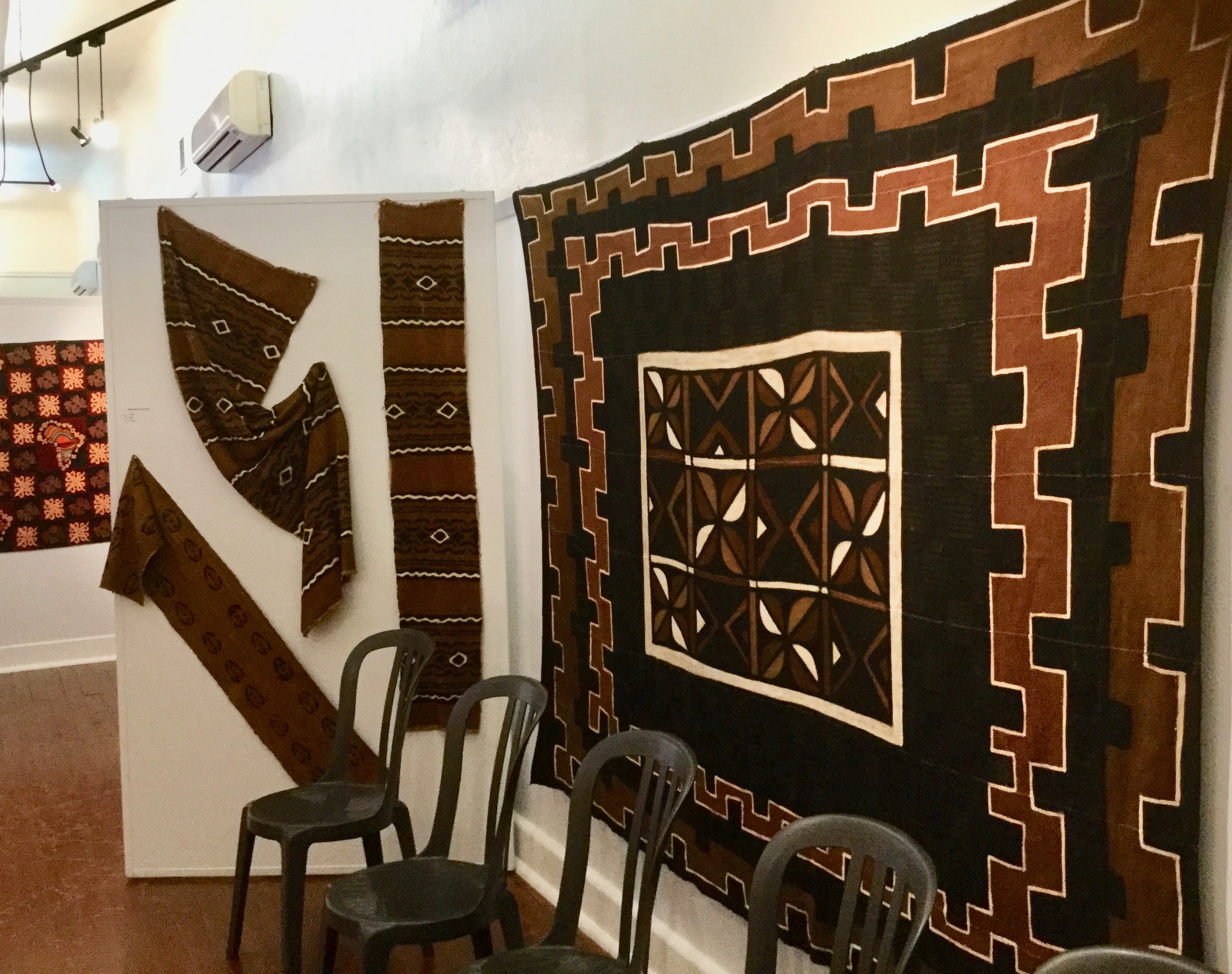 The walls surrounding MAFT at the ten-day exhibit were adorned with various African fabrics including mud cloth, kente, indigo cloth, and wood scupltures. Periodic talks about the timeline were also part of the exhibit programme.
